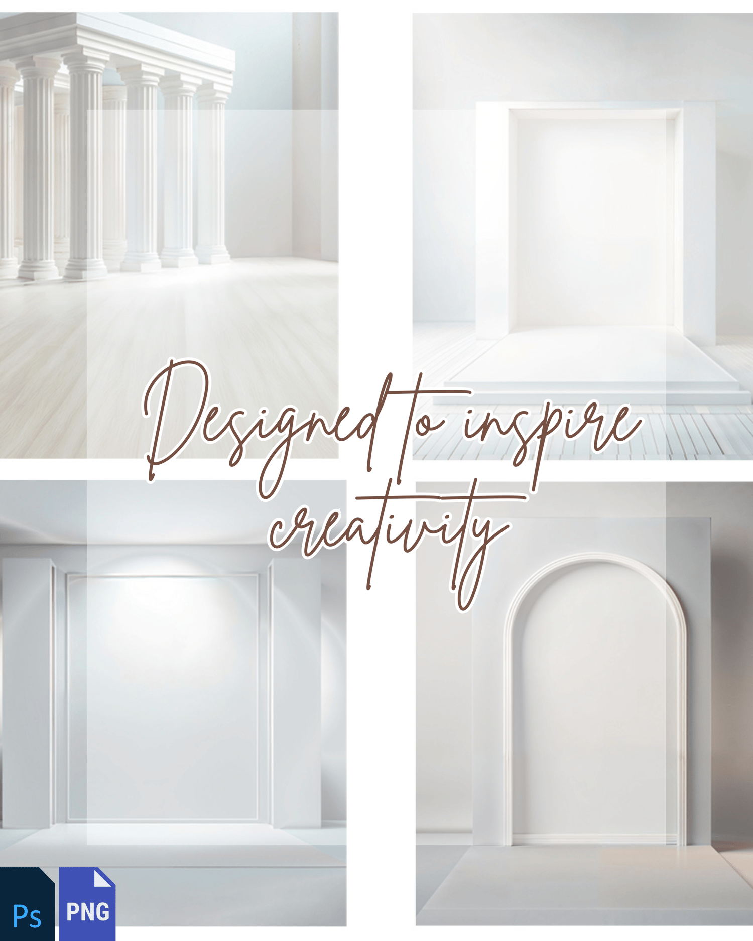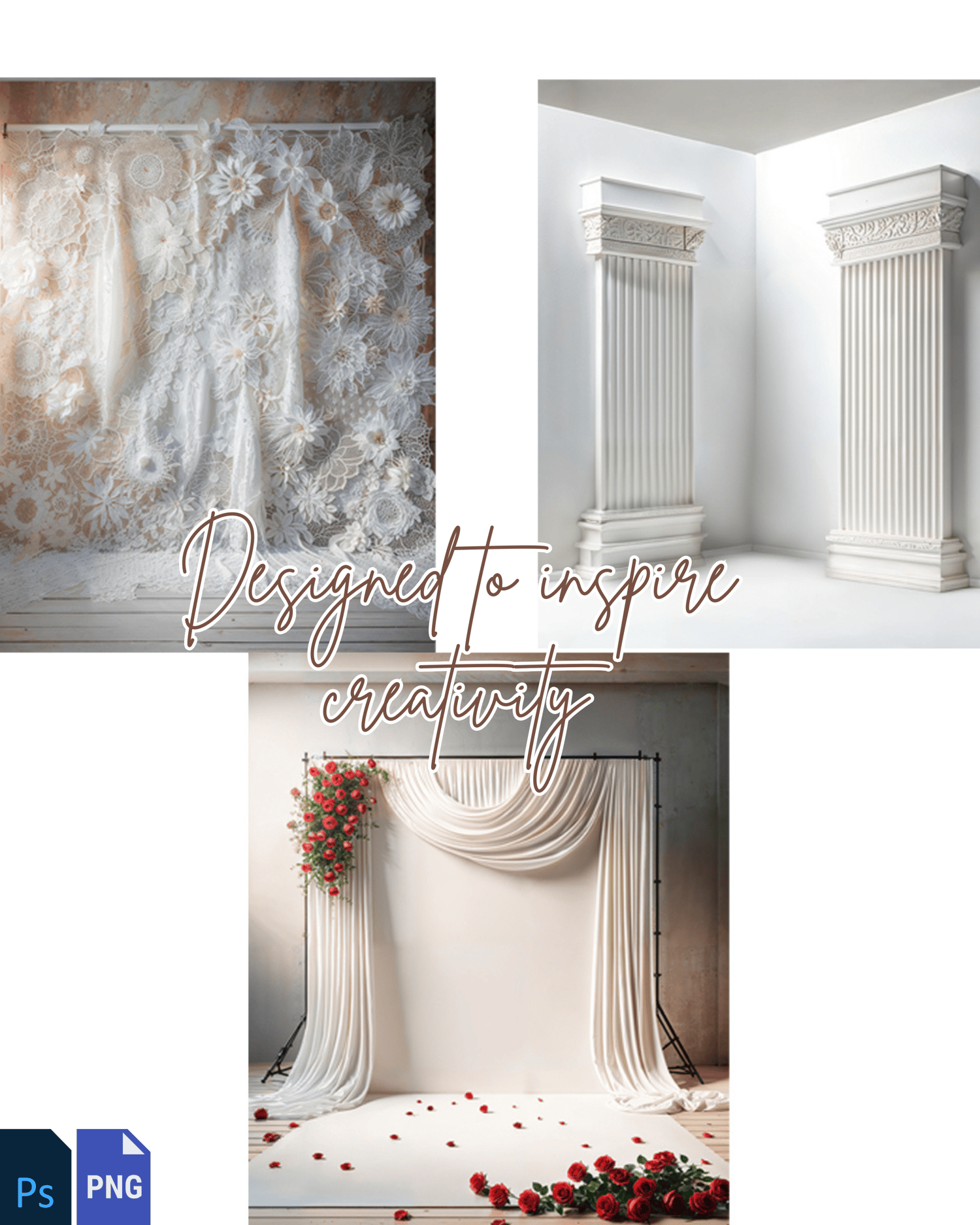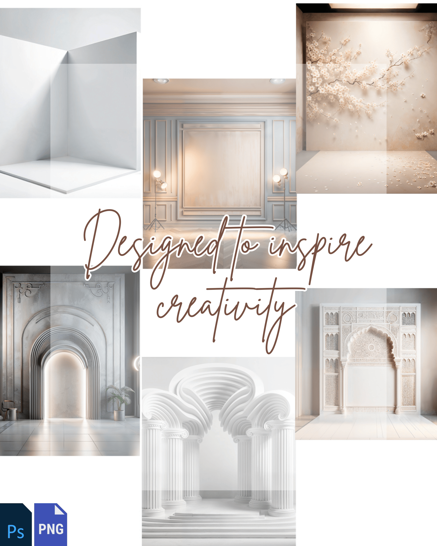 Step into a world of timeless elegance with Timeless Arches & Frames I—a collection of 15 meticulously designed AI backgrounds. Instead of having a bare, boring grey or white backdrop this collection featuring grand arches, intricate frames, and stunning architectural elements is perfect for adding depth and sophistication to your creative projects. Whether you're a photographer, designer, or artist, these backgrounds will elevate your work with ease and style.