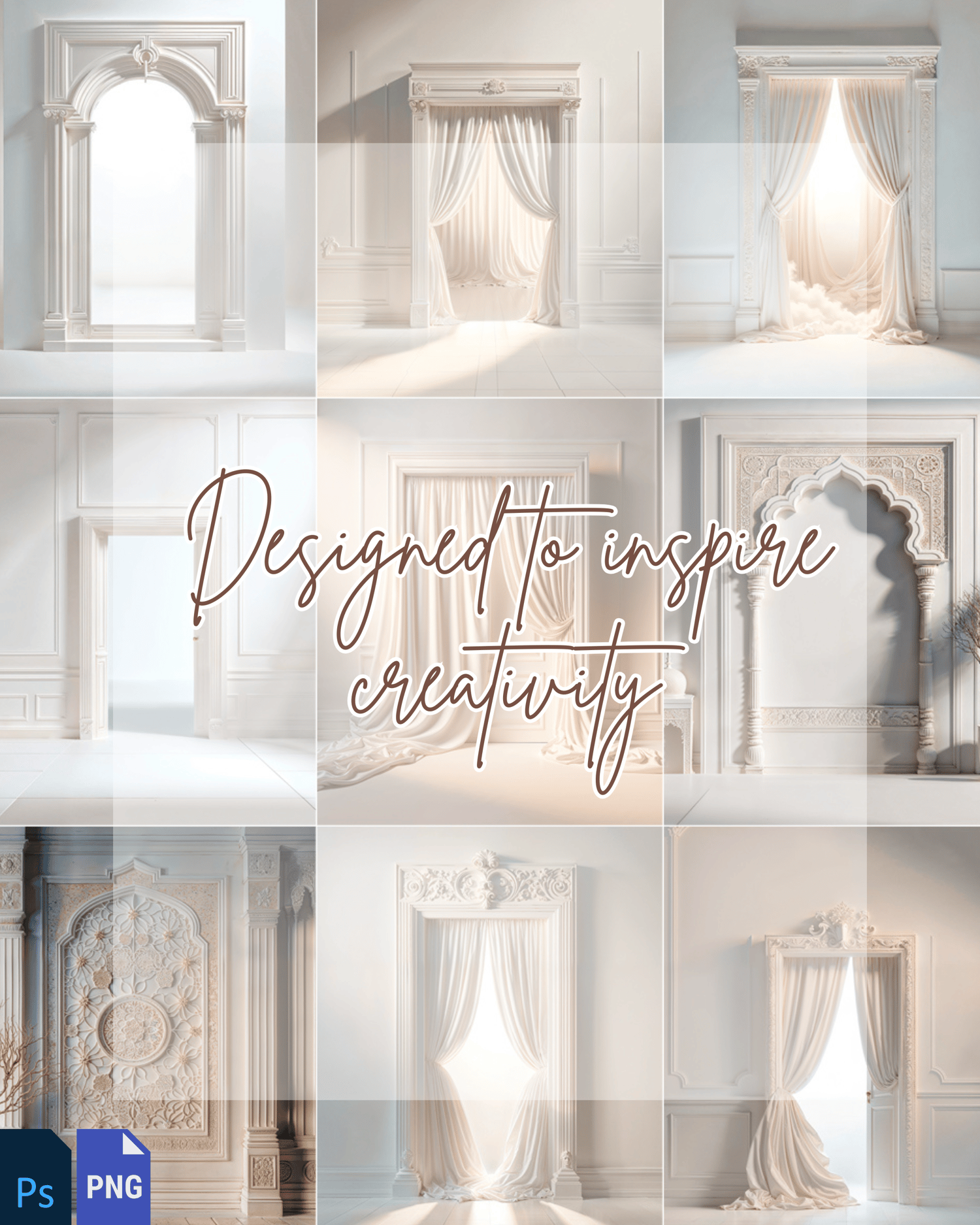 The elegance continues with Timeless Arches & Frames II, the second part of our premium overlay series. This collection includes 10 stunning overlays featuring luxurious drapes, intricate frames, and timeless architectural designs. Perfect for photographers, designers, and creators, these overlays will transform your work into professional, eye-catching masterpieces.